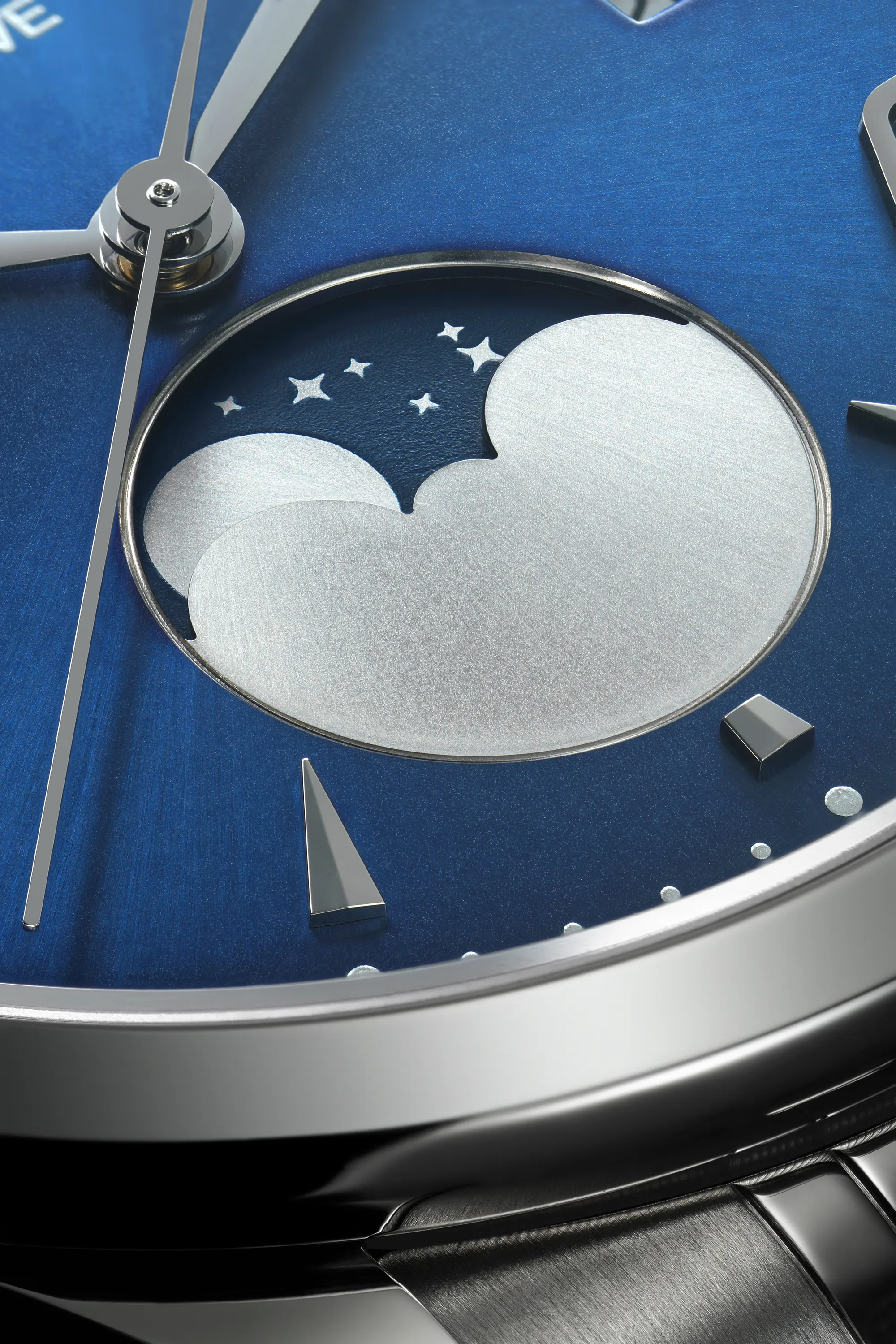 Black, Blue and Champagne-colour satin sun-brushed dial with applied numerals and moon phase indicator